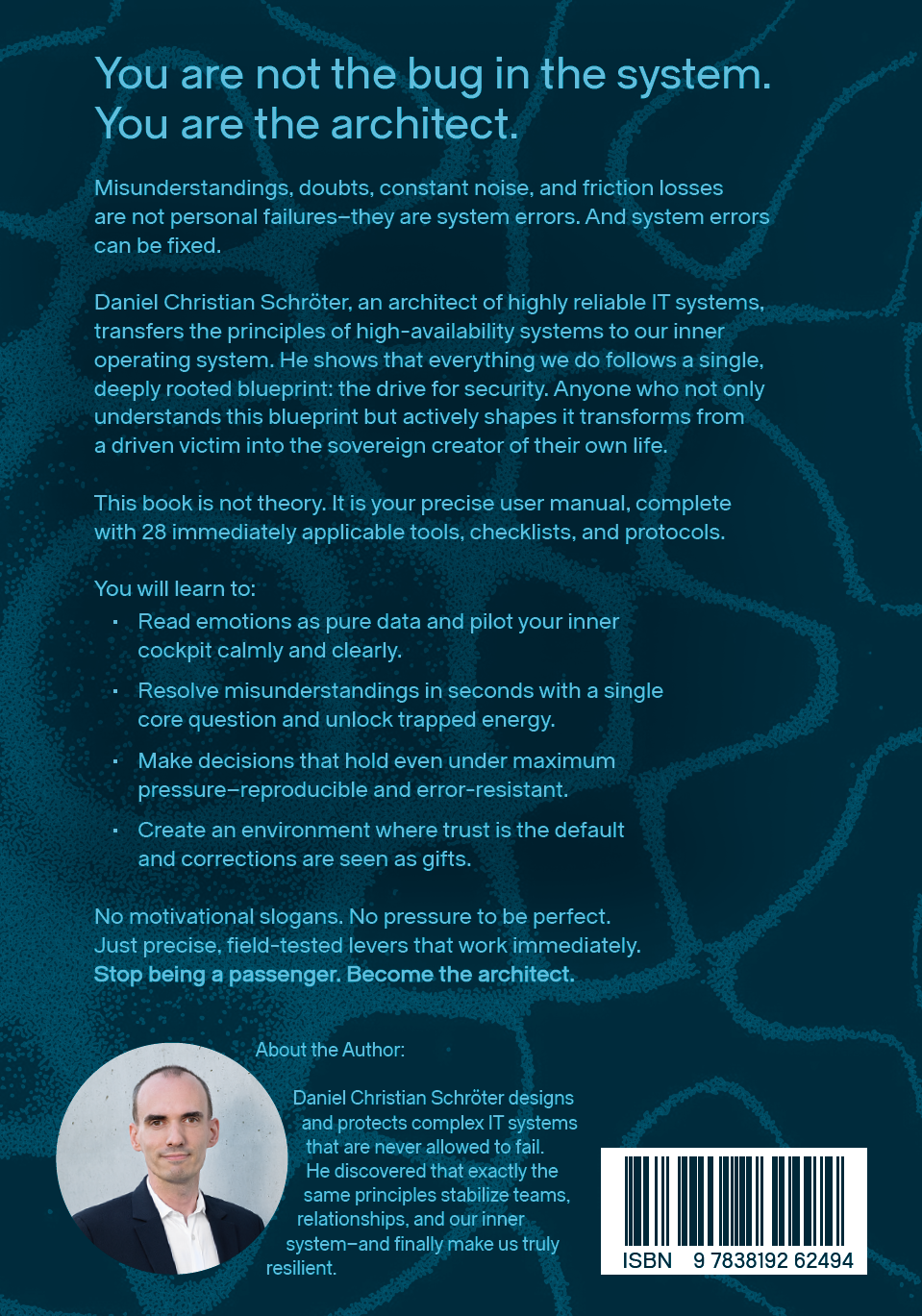 As an author, he transfers principles of high availability to human systems. Not as metaphor, but as method. His focus is on agency, integrity, and robustness – where illusions end and responsibility begins.